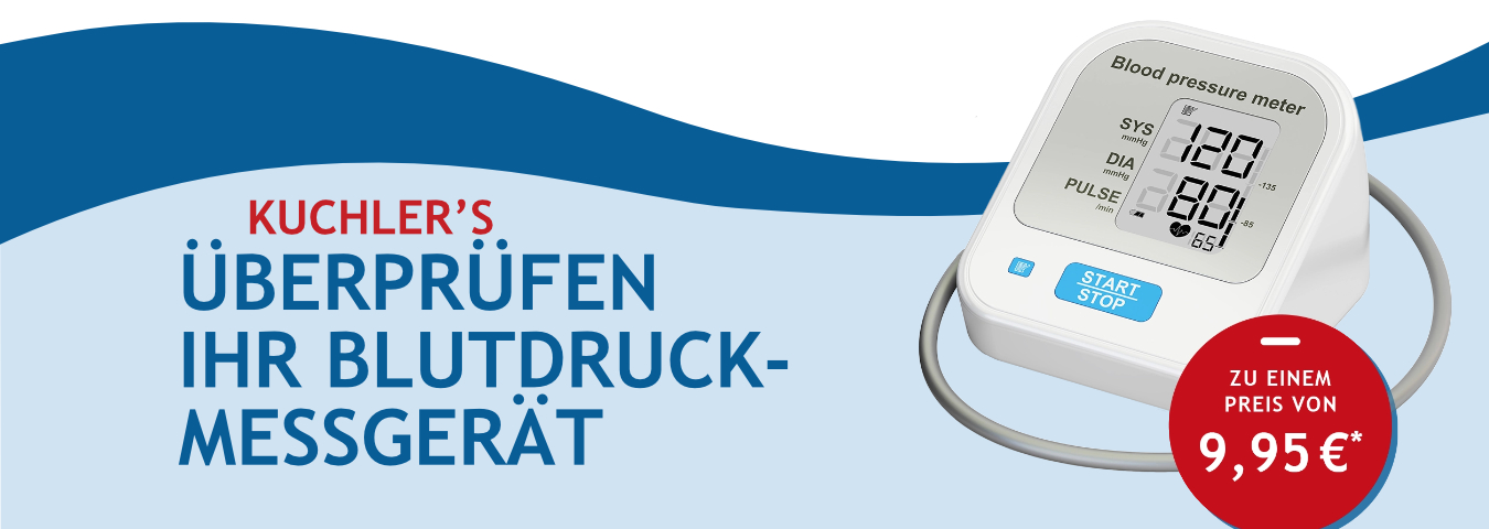 *Wir überprüfen alle handelsüblichen Geräte. Sollte der Kauf eines neuen Blutdruckmessgeräts nötig sein, rechnen wir Ihnen die 9,95 Euro auf den Kaufpreis an.